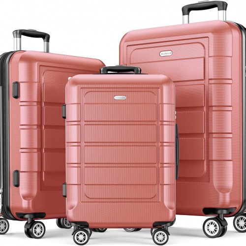 SHOWKOO Luggage Sets Expandable PC+ABS Durable Suitcase Sets Double Wheels TSA Lock Rose Gold 3pcs
