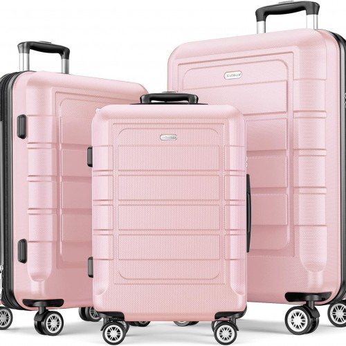 SHOWKOO Luggage Sets Expandable PC+ABS Durable Suitcase Sets Double Wheels TSA Lock Pink 3pcs