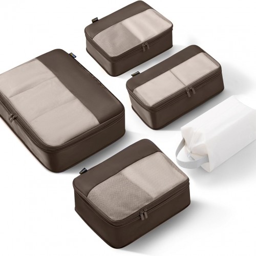 5 Set Compression Packing Cubes for Travel, Space Saving Luggage Organizer Bags (Charcoal Gray)