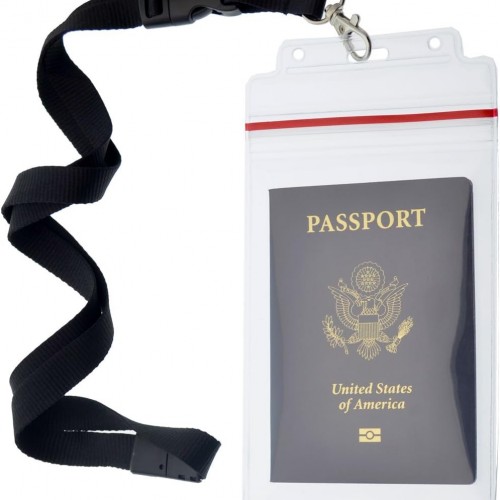 Passport Holders – 2 Pack – Heavy Duty Water and Tear Resistant Resealable Sleeves & Premium Breakaway Lanyard – 4X6 Insert for Vaccination Cards, Cruise, Travel, and Beach Vacation Documents (Black)