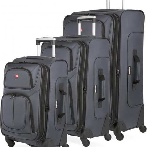 SwissGear Sion Softside Expandable Luggage, Dark Grey, 3-Piece Set (21/25/29)