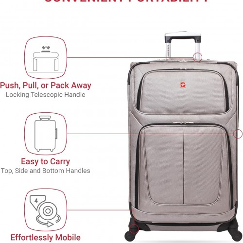 SwissGear Sion Softside Expandable Roller Luggage, Pewter, 3-Piece Set (21/25/29)