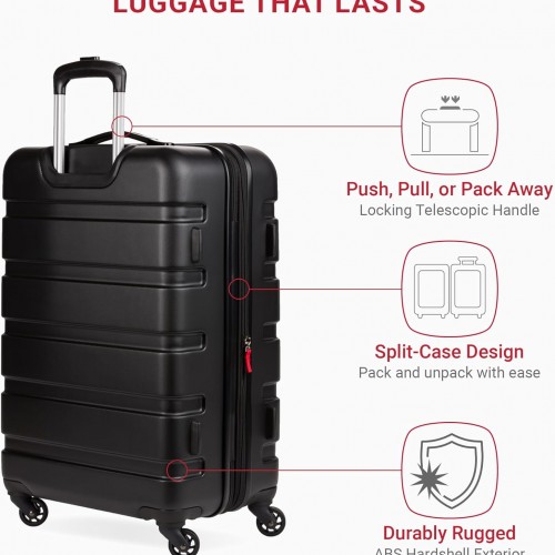 SwissGear 7366 Hardside Expandable Luggage with Spinner Wheels, Black, Checked-Medium 23-Inch