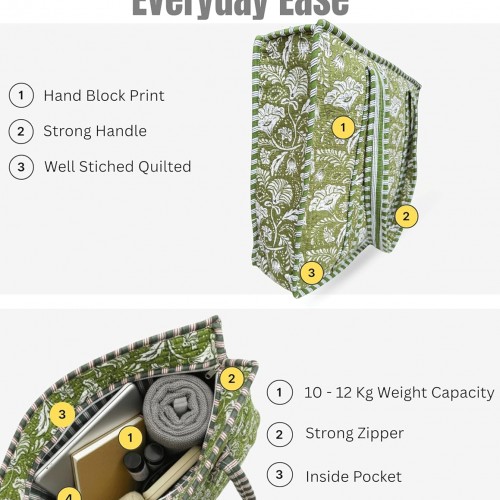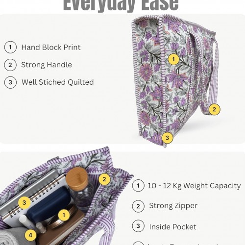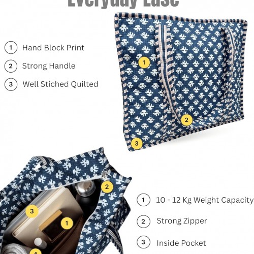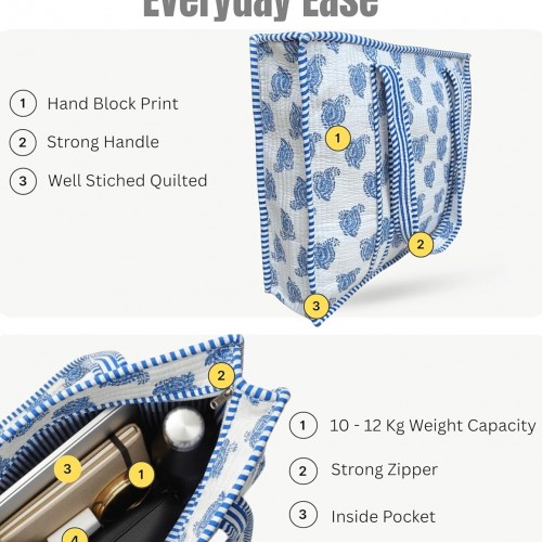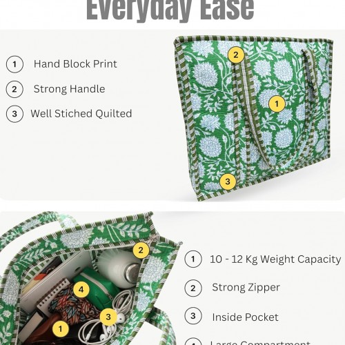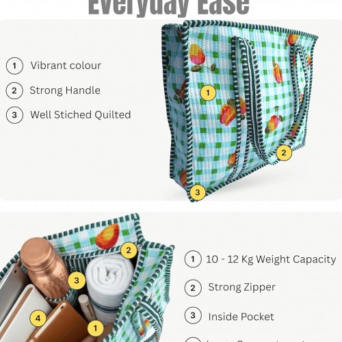 Cotton Quilted Tote Bag for Women – Large Beach & Travel Tote with Zipper, Reusable Grocery Bag