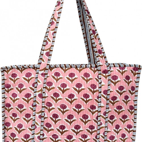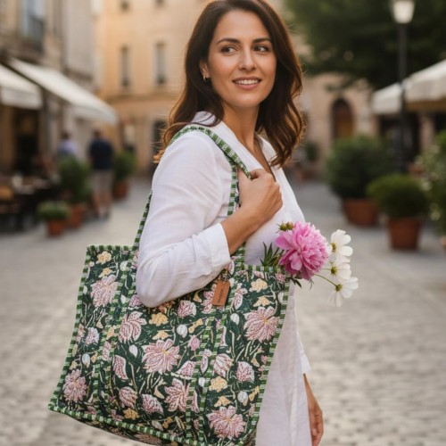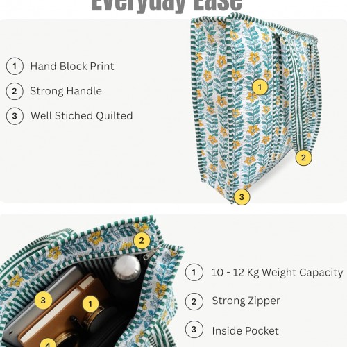 Cotton Quilted Tote Bag for Women – Large Beach & Travel Tote with Zipper, Reusable Grocery Bag