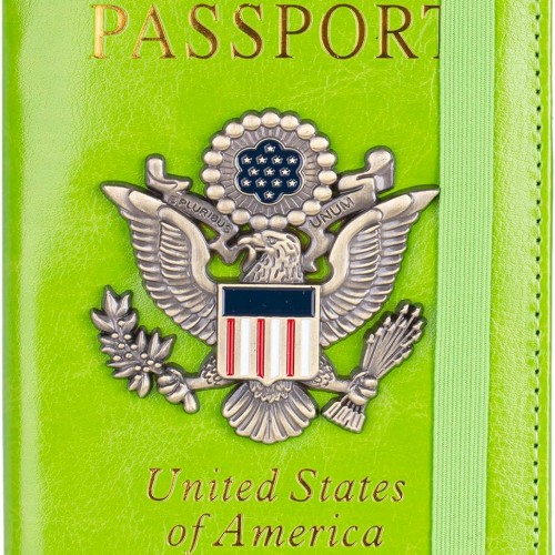 TOURSUIT RFID Blocking Passport Holder for Women Men, Leather Passport Travel Wallet with Metal 3D Metal Badge, Travel Document Holder Cover Accessories (Green)