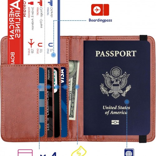 TOURSUIT RFID Blocking Passport Holder for Women Men, Leather Passport Travel Wallet with Metal 3D Metal Badge, Travel Document Holder Cover Accessories (Brown)