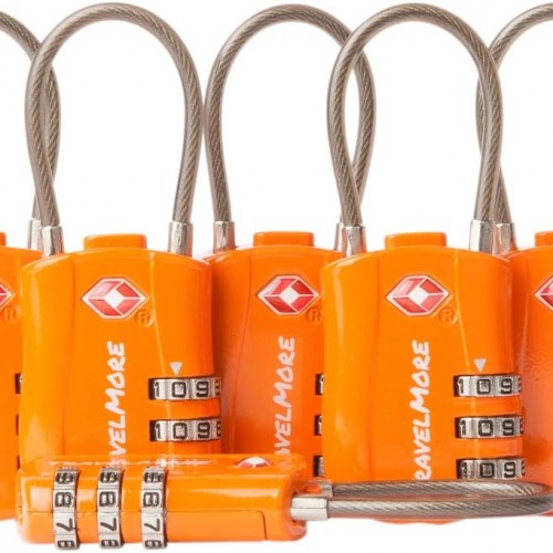 6 Pack TSA Approved Travel Combination Cable Luggage Locks for Suitcases & Backpacks – Orange