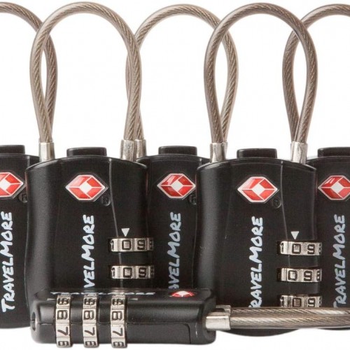 6 Pack TSA Approved Travel Combination Cable Luggage Locks for Suitcases & Backpacks – Black