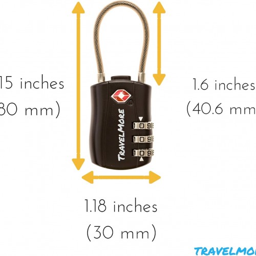 6 Pack TSA Approved Travel Combination Cable Luggage Locks for Suitcases & Backpacks – Black