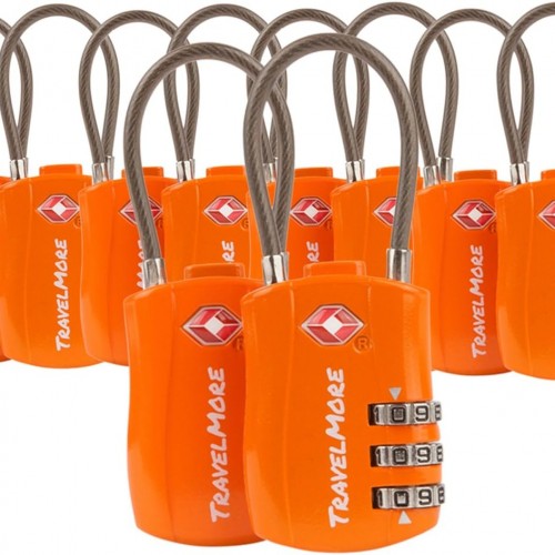 TravelMore 10 Pack TSA Approved Travel Combination Cable Luggage Locks for Suitcases – Orange