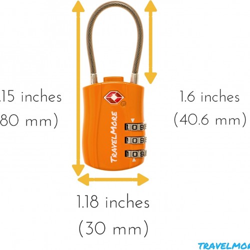 TravelMore 10 Pack TSA Approved Travel Combination Cable Luggage Locks for Suitcases – Orange