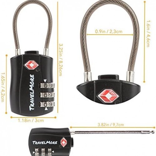 8 Pack TSA Approved Travel Combination Cable Luggage Locks for Suitcases – 4 Black & 4 Orange
