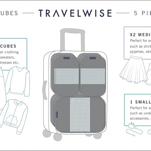 TravelWise Packing Cube System – Durable 5 Piece Weekender Plus Set (Silver)
