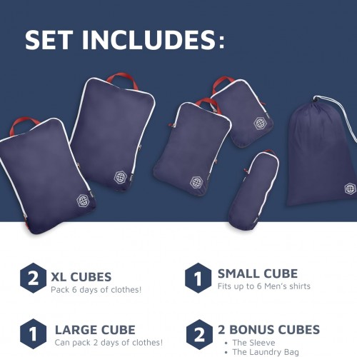 Extra Large Compression Packing Cube 6 Piece Set for Travel and Check Luggage by TRIPPED Travel Gear