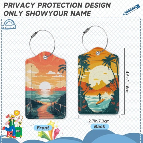 Sunset Beach Summer Luggage Tags, 2 Pack Travel Cruise Tags for Suitcases, Cute Identifiers with Privacy Flap, Baggage Tags for Women Men Handbag