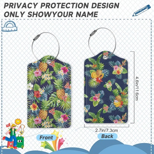 Tropical Pineapples Luggage Tags for Suitcases,2 Pack Palm Leaves Flowers Luggage Tag,Leather Stainless Steel Loop Label Tag for Women Men Girls Travel Bag Suitcase