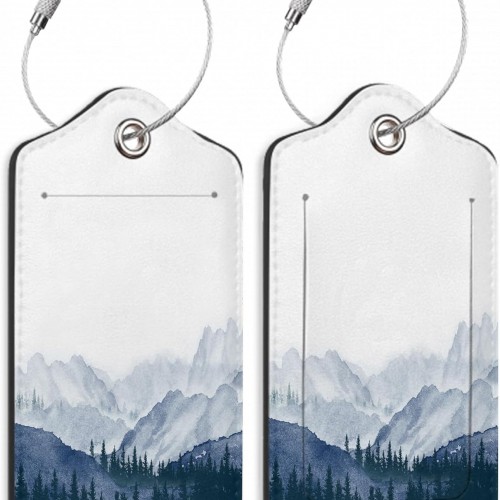 Pine Mountain ForestLuggage Tags for Suitcases,2 Pack Winter Woods Luggage Tag,Leather Stainless Steel Loop Label Tag for Women Men Girls Travel Bag Suitcase