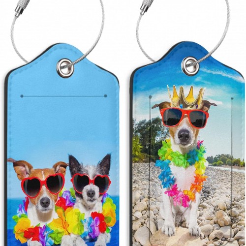 Dogs on Beach Luggage Tags for Suitcases,2 Pack Hawaii Luggage Tag,Leather Stainless Steel Loop Label Tag for Women Men Girls Travel Bag Suitcase