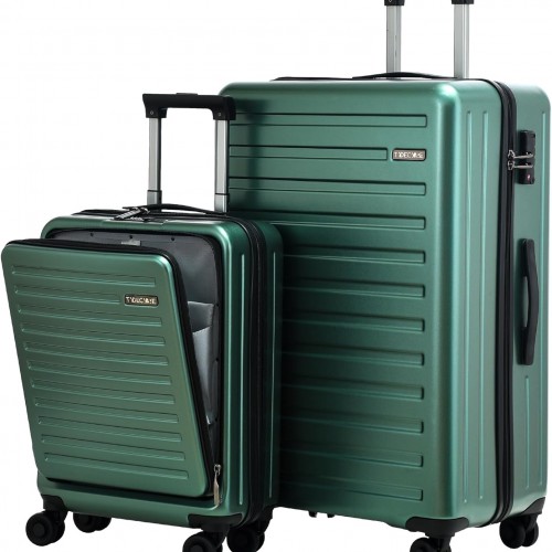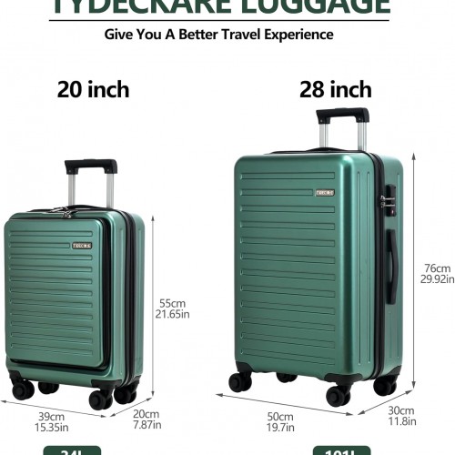 TydeCkare 2pcs 20/28″ Luggage Set Lightweight HardShell, Only 20 Inch Carry On 21.65 * 15.35 * 7.87″ Cabin Suitcase with Front Pocket, 28 Inch 19.68 * 11.81 * 29.92″ Checked Luggage, Green