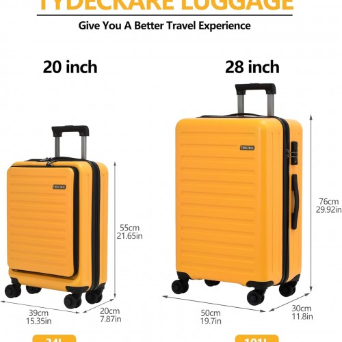 TydeCkare 2pcs 20/28″ Luggage Set Lightweight HardShell, Only 20 Inch Carry On 21.65 * 15.35 * 7.87″ Cabin Suitcase with Front Pocket, 28 Inch 19.68 * 11.81 * 29.92″ Checked Luggage, Orange
