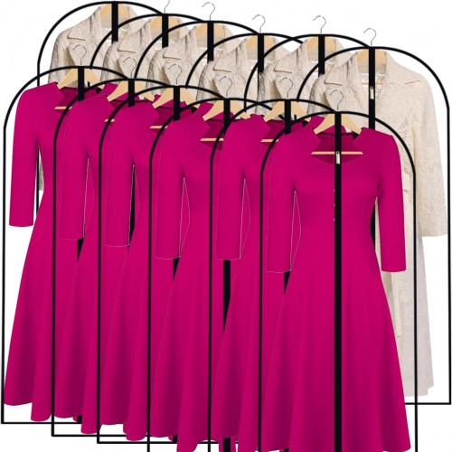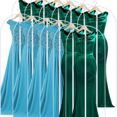 Garment Bags for Hanging Clothes 24” x 54” (Set of 12) Coat Covers for Closet Foldable Washable Dress Bags for Hanging Clothes for Long Dress Dance Costumes Suits Gowns Coats