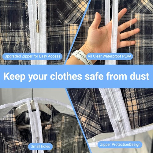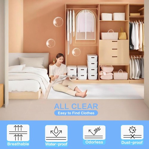 Garment Bags for Hanging Clothes 24” x 60” (Set of 12) Coat Covers for Closet Foldable Washable Dress Bags for Hanging Clothes for Long Dress Dance Costumes Suits Gowns Coats