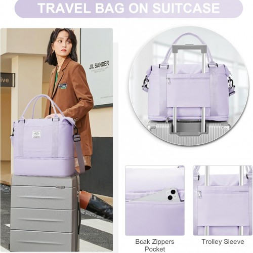 Travel Duffel Bag, Sports Tote Gym Bag, Shoulder Weekender Overnight Bag for Women