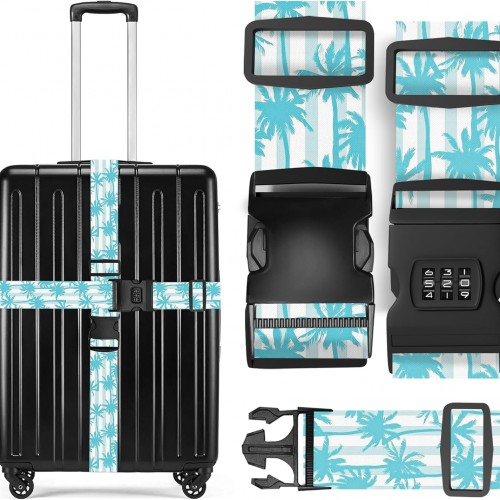 2 Pack Luggage Straps, Adjustable Cute Printing with Combination Lock Luggage Straps for Women Men Travel School Business Trips-Coconut Trees
