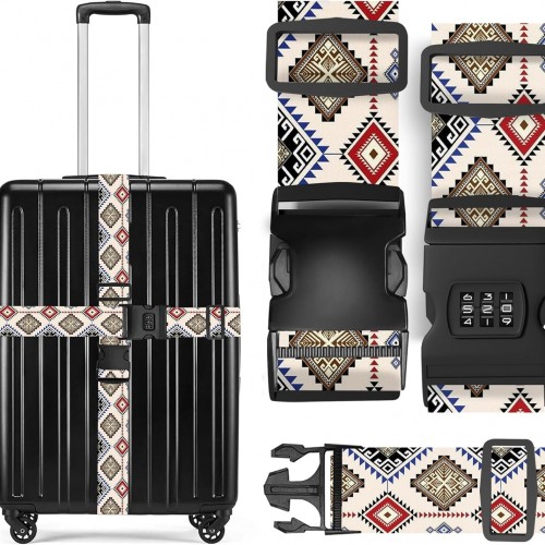 2 Pack Luggage Straps, Adjustable Cute Printing with Combination Lock Luggage Straps for Women Men Travel School Business Trips-Boho