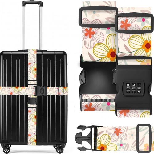 2 Pack Luggage Straps, Adjustable Cute Printing with Combination Lock Luggage Straps for Women Men Travel School Business Trips-Flowers