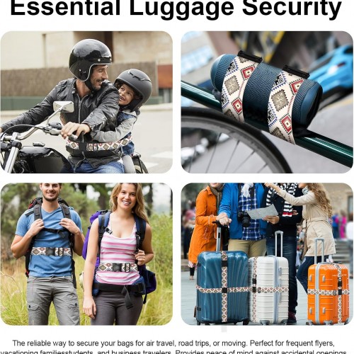 2 Pack Luggage Straps, Adjustable Cute Printing with Combination Lock Luggage Straps for Women Men Travel School Business Trips-Boho