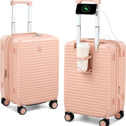 16 Inch Carry On Luggage Airline Approved, Expandable Lightweight ABS+PC Hard Shell Suitcases with 360° Spinner Wheels, TSA Lock, YKK Zippers (Black)