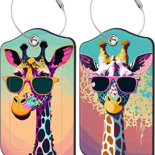 2 Pack Luggage Tag for Suitcase Funny Cat Passport Leather Travel Cruise Luggage Tag with Stainless Steel Loop Name ID Label Privacy Cover for Adults Teens Travel Bag Labels Set