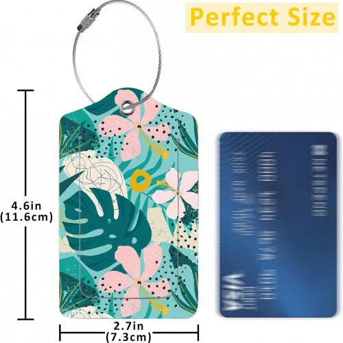 2 Pack Tropical Flowers Luggage Tag for Suitcases Artistic Palm Leaves PU Leather Bag Travel Suitcase ID Identifier Baggage Tags for Women Men Travel