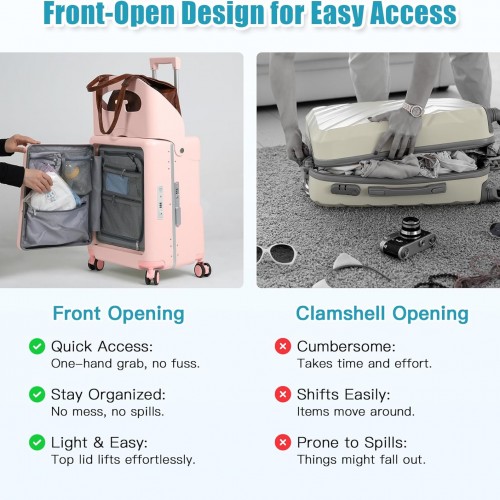22″ Ride On Luggage with Seat for Kids & Adults, Lightweight Hardside Ride-On Suitcase with Front Opening, TSA Lock, 360° Spinner Wheels, Pink