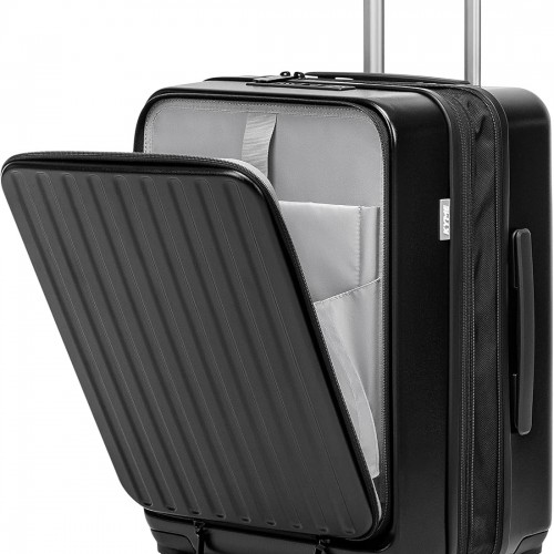 22×14×9 Airline Approved Carry On Expandable Luggage with Front Open Pocket, Spinner Wheels, ABS+PC Hardshell Small 20inch Suitcase with Protective Cover and Luggage Tag, Black