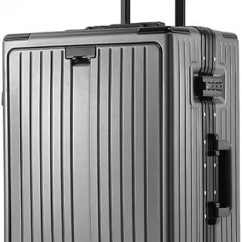 24 Inch Check-In Luggage Aluminum Frame Zipperless Luggage, Hard Shell Suitcase TSA Approved Checked Luggage, ABS+PC Lightweight Zipperless Suitcase with Spinner Wheels (Grey)