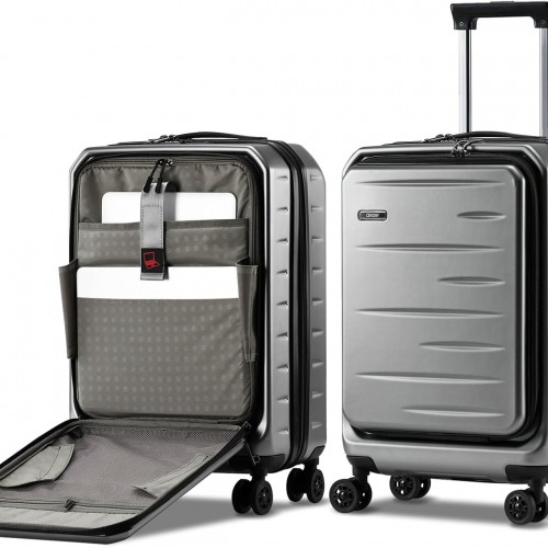 - 【Ergonomic Carry & Adjustable Telescoping Handle】In addition to regular grip from top / side handle, our lightweight luggage with spinner wheels allows jointly grasping top / bottom handles with both hands to lift suitcase, where convenience and ease stand out when putting into the car trunk or airplane overhead cabin. Besides, 4 side bumper feet protect the heavy duty luggage bottom from wear or dirt, and retractable luggage handle can be adjused in various heights for users of all statures.