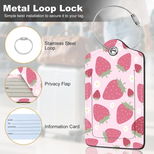 2Pack Luggage Tags for Suitcases, Cute Unique Pu Leather Cruise Luggage Tag with Privacy Cover ID Label Address Card and Metal Ring Suitable for Women Men Kids Travel Bag Pink Strawberry