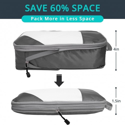 3 Set Compression Packing Cubes for Travel – Compressible, Lightweight, and Space-Saving Packing Cubes, Travel Essentials for Women, Grey