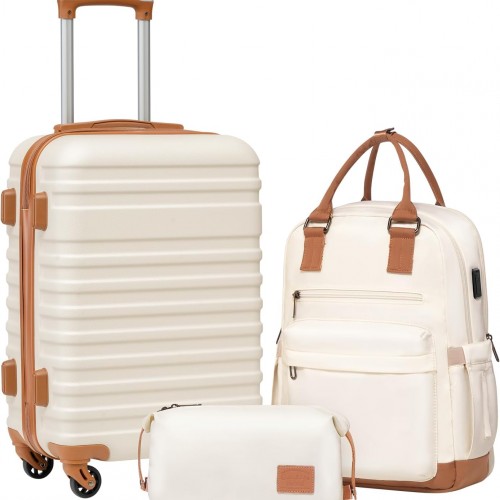 3Pcs (20/24/28) Luggage Set, HardShell Lightweight, Only 20″ with Front Pocket, 21.65*15.35*7.87″ Fits Overhead Cabin, 24″ (26*17.7*10.2″) and 28″ (19.68*11.81*29.92″) Checked Luggage, Green