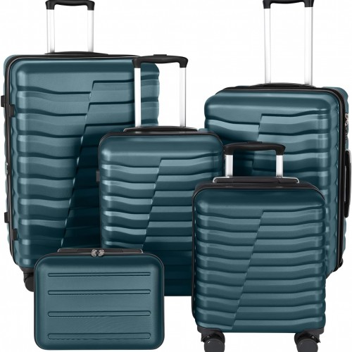 5-Piece Luggage Set, Lightweight ABS+PC Hard Shell Suitcase with YKK Zipper & TSA Lock for Family, Avocado Green, 14in/18in/20in/24in/28in