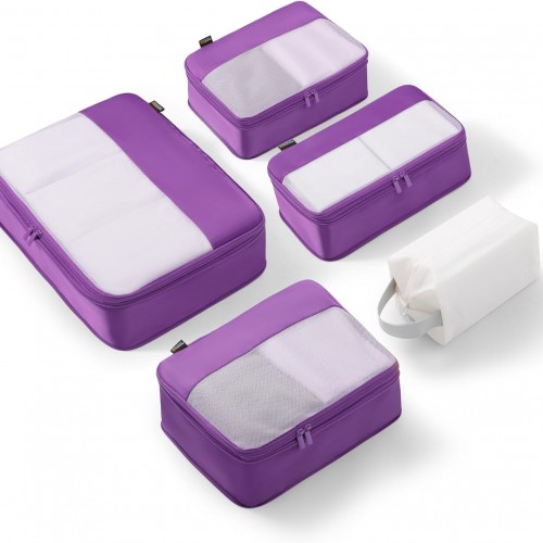 6 Set Compression Packing Cubes for Travel Essentials, Luggage Organizers for Suitcases (Dark Brown)