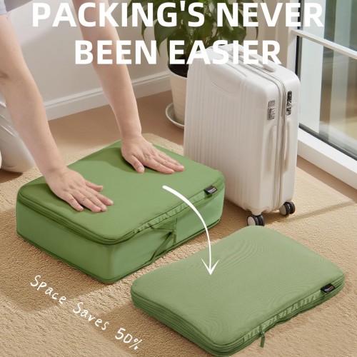 6 Set Compression Packing Cubes for Travel, Large Medium Small Luggage Organizers, Storage Bags for Clothes (6 Pack, Forest Green)
