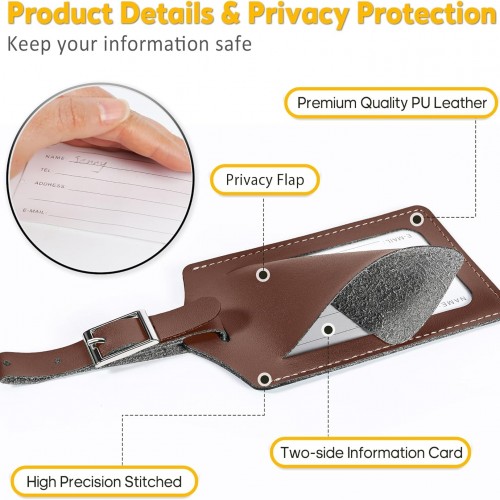 8 Pack Leather Luggage Travel Bag Tags by Travelambo