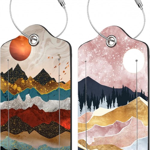 Abstract Line Art 3 Pack PU Leahter Luggage Tag with Stainless Steel Loop, Monochrome Marble Travel Suitcase Labels with Privacy Cover ID Label Quickly Spot for Bags