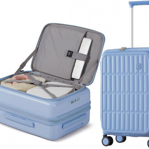 aji Expandable Top Open 24 Inch Checked Luggage with Spinner Wheels, Large Suitcase with TSA Lock, Hardside Travel Luggage Suitcases for Men Women, for 14+Days Travel, Blueberry Blue