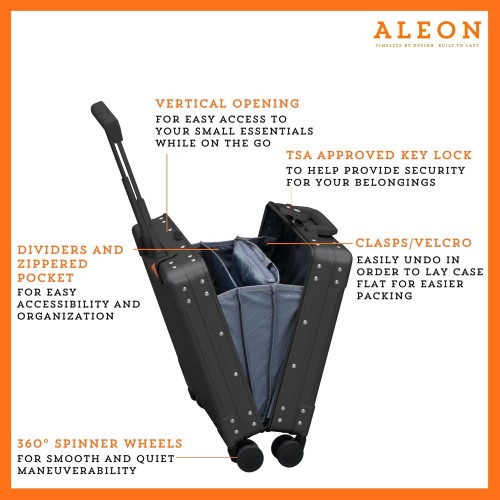 - PREMIUM & COMPACT DESIGN: This rolling underseat bag with 4-spinner wheels blends durability with sophistication. Designed for professionals, it features a vertical opening for quick access & a removable business organizer for effortless navigation through airport security. This underseat carry-on luggage keeps essentials secure while complementing a polished business look. Whether breezing through TSA checkpoints or heading to meetings, this under-seat luggage delivers streamlined convenience.