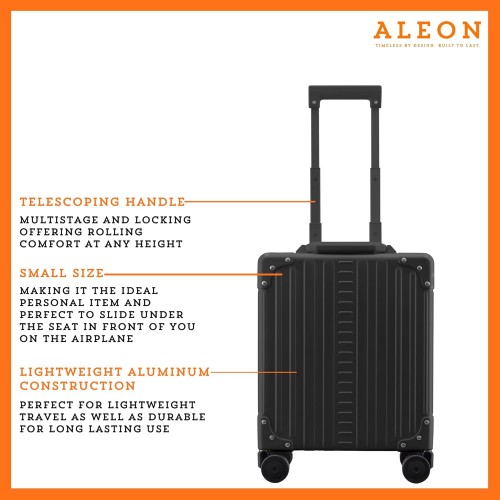 - SLEEK DESIGN WITH AMPLE SPACE: Crafted from aircraft-grade aluminum, this carry-on under-seat luggage offers durability and sophistication. With external dimensions of 16.4″ x 12.5″ x 6″ and internal dimensions of 13.2″ x 11.6″ x 5.2″, this under-seat suitcase with protective front and back corner bumpers provides ample room for essentials. Designed for professionals, this rolling underseat carry-on keeps belongings secure, making it ideal for seamless airport navigation and business meetings.